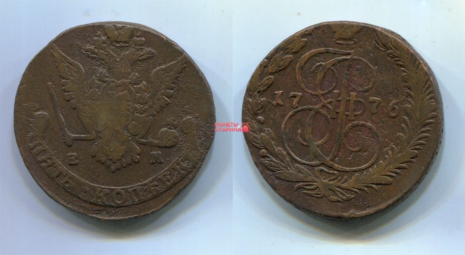 → Монета медная 5 копеек 1776 года (ЕМ). Императрица Екатерина II