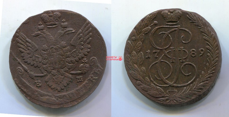 → Монета медная 5 копеек 1789 года (ЕМ). Императрица Екатерина II