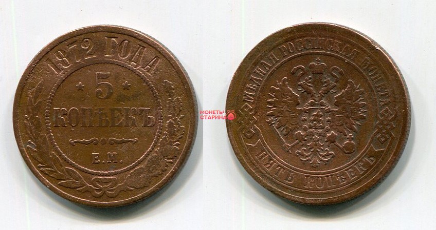 → Монета медная 5 копеек 1872 года . Император Александр II