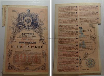 → Внутренний 5 % заем 1914 года. Облигация в 1000 рублей