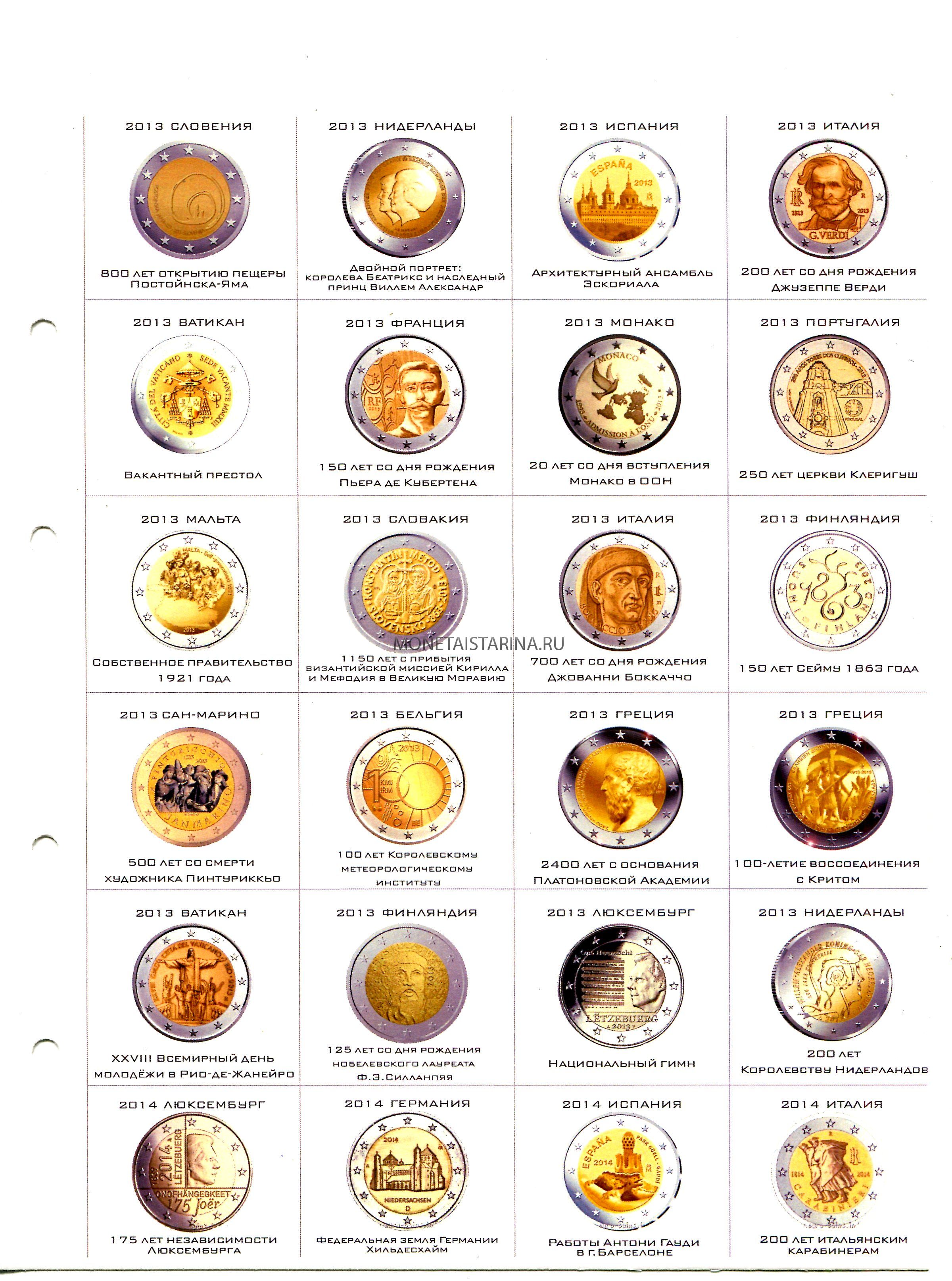 Лист картонный для альбома Памятные монеты 2 евро 2013-2014 (формат Оптима).