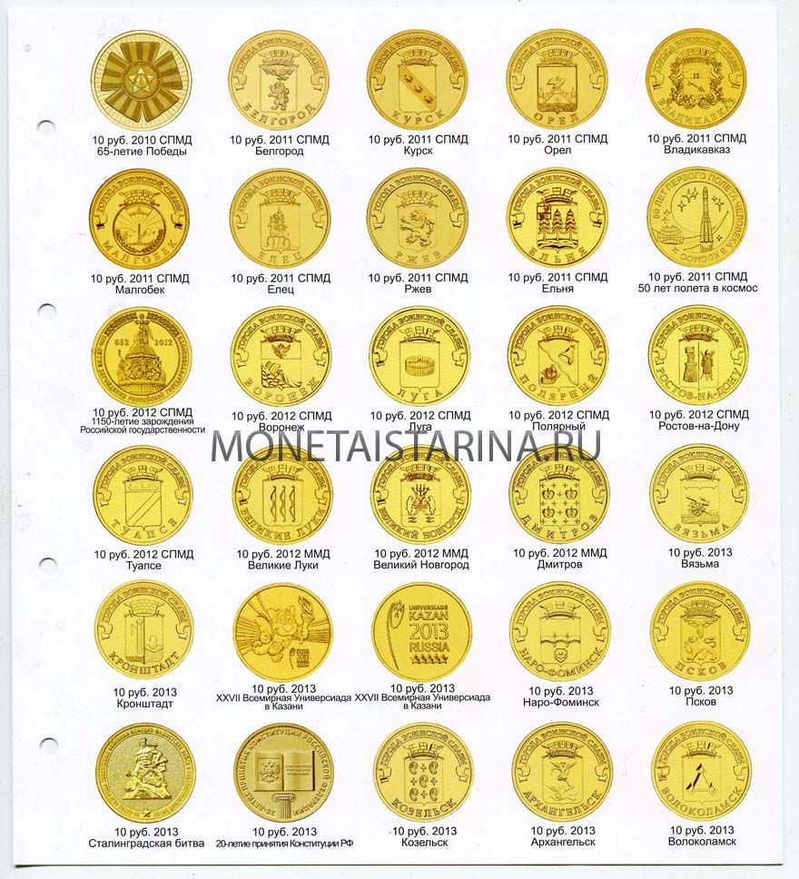 Лист картонный к альбомам для Памятных 10-рублевых монет (формат Нумис)