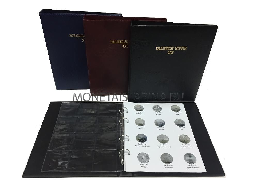 Альбом для ЮБИЛЕЙНЫХ серебряных монет Олимпиада-80 (3 листа, кожзам, формат Оптима)