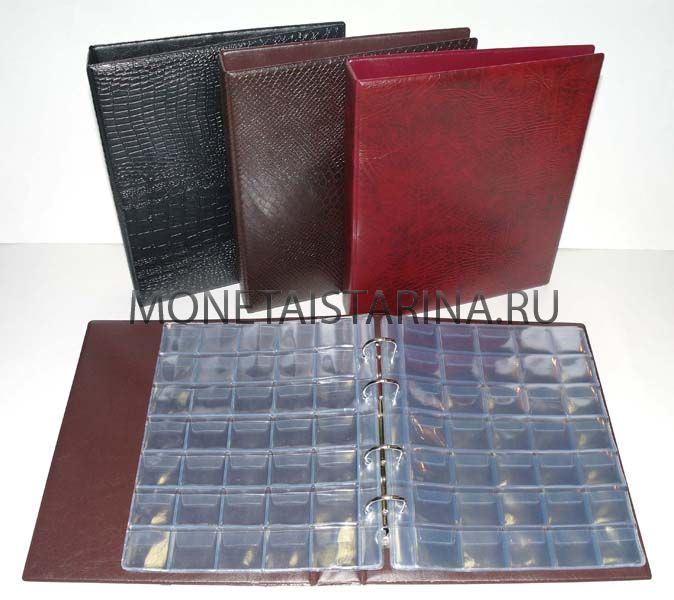 Альбом кольцевой на 415 монет (кожзам, Оптима, М415)