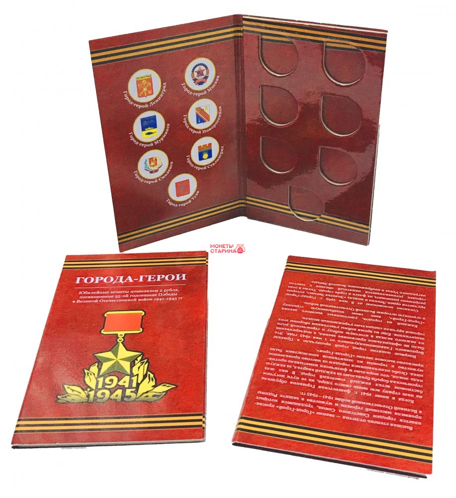 Альбом предназначен для памятных 2-рублевых монет, выпущенных в ознаменование заслуг граждан Городов-героев в борьбе против фашистской Германии.