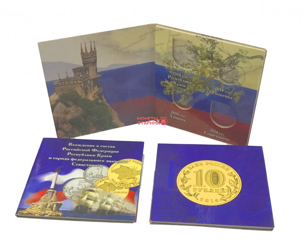 → Буклет на 4 монеты "10-рублевые Крым, Севастополь, 1 копейка, 5 копеек 2014"