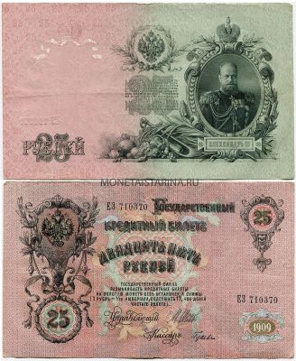 Банкнота 25 рублей 1909 года (Упр. Шипов И.П.)
