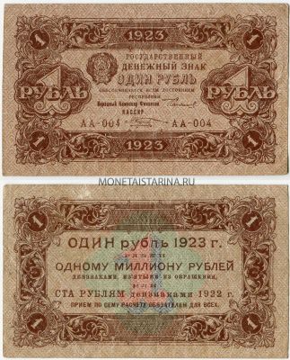 Банкнота 1 рубль 1923 года (1-й выпуск)