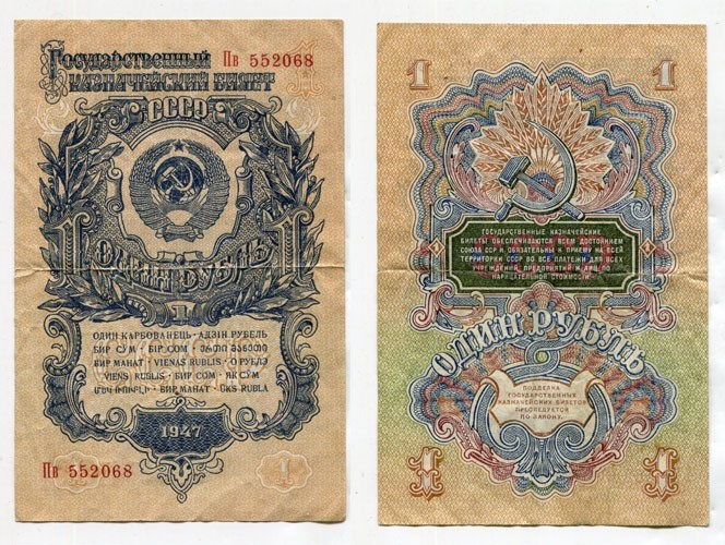 → Банкнота 1 рубль 1947 (1957) года (15 витков на гербе)