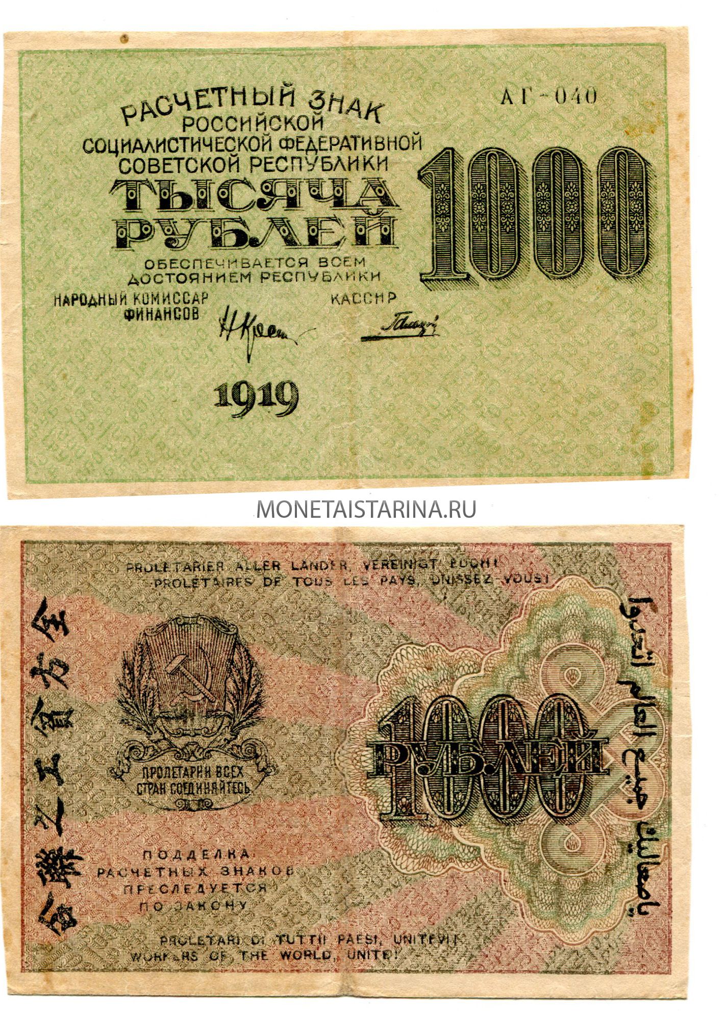 Банкнота 1000 рублей 1919 года (в.з. "звезды")