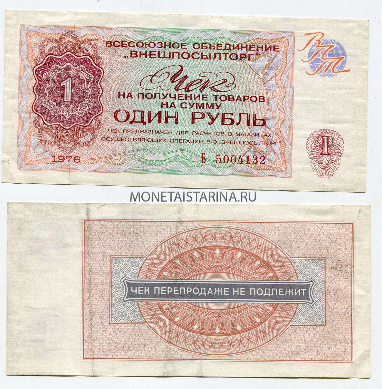 → Чек Внешпосылторга на сумму 1 рубль 1976 года