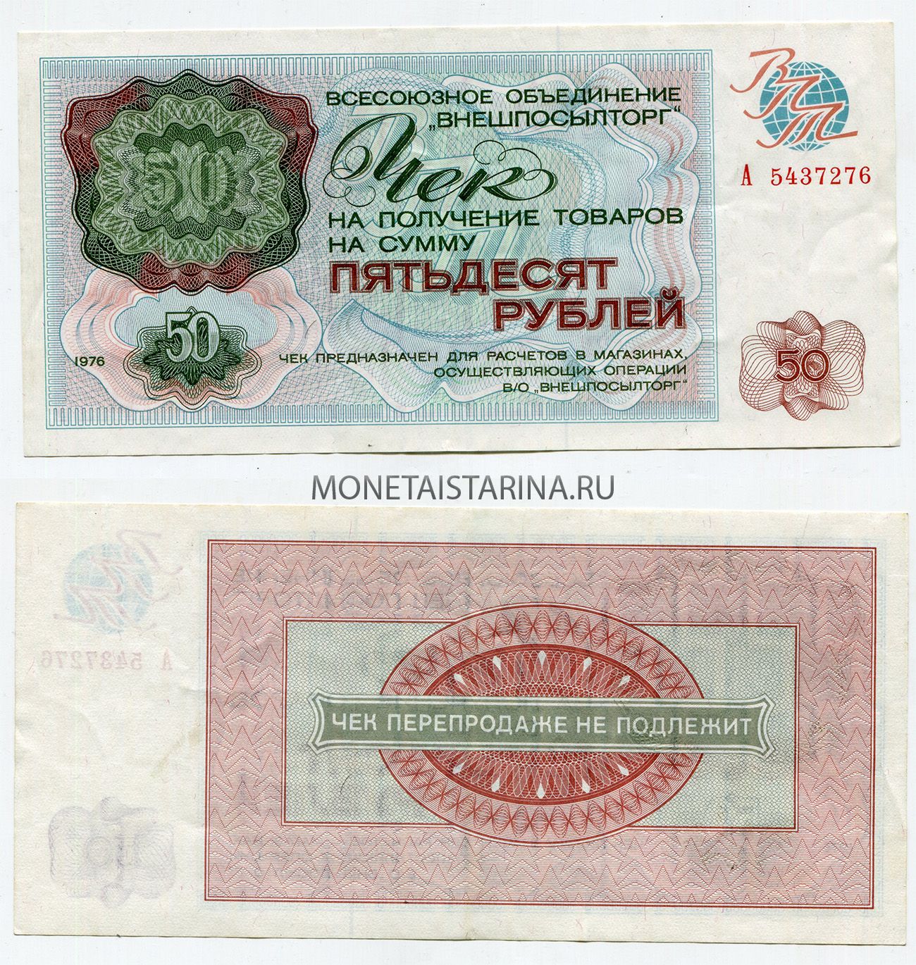 Чек Внешпосылторга на сумму 50 рублей 1976 года
