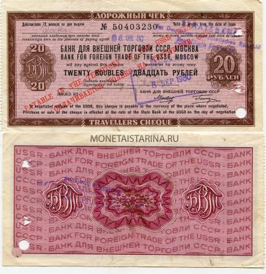 → Дорожный чек на сумму 20 рублей 1980 года