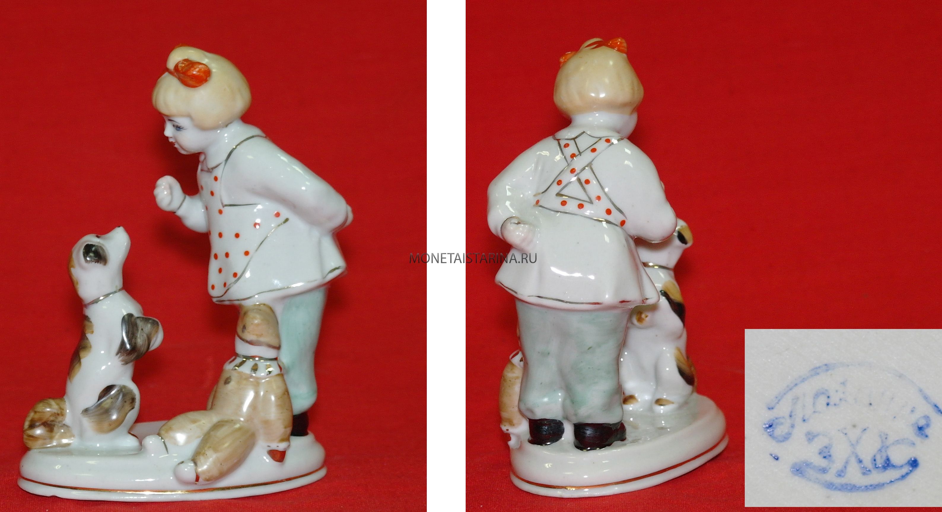 → Статуэтка фарфоровая "Девочка с собачкой".Полонский завод художественной керамики.Украина