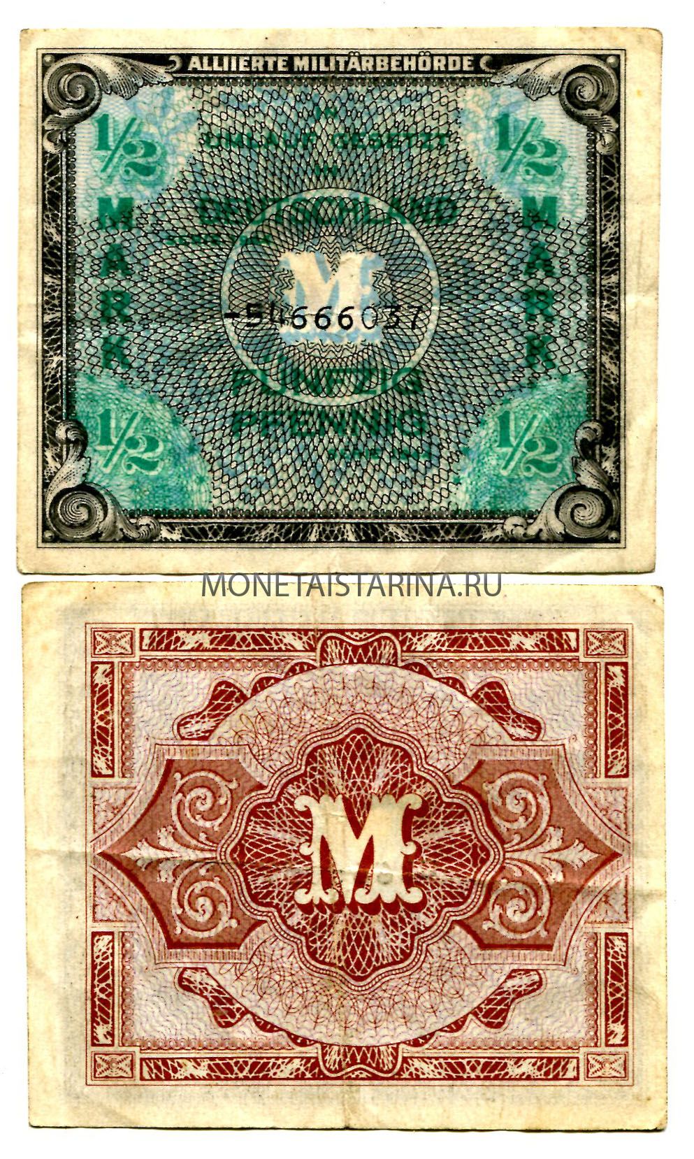 Банкнота 1/2 марки Союзного военного командования 1944 года Германия (Советская зона оккупации)
