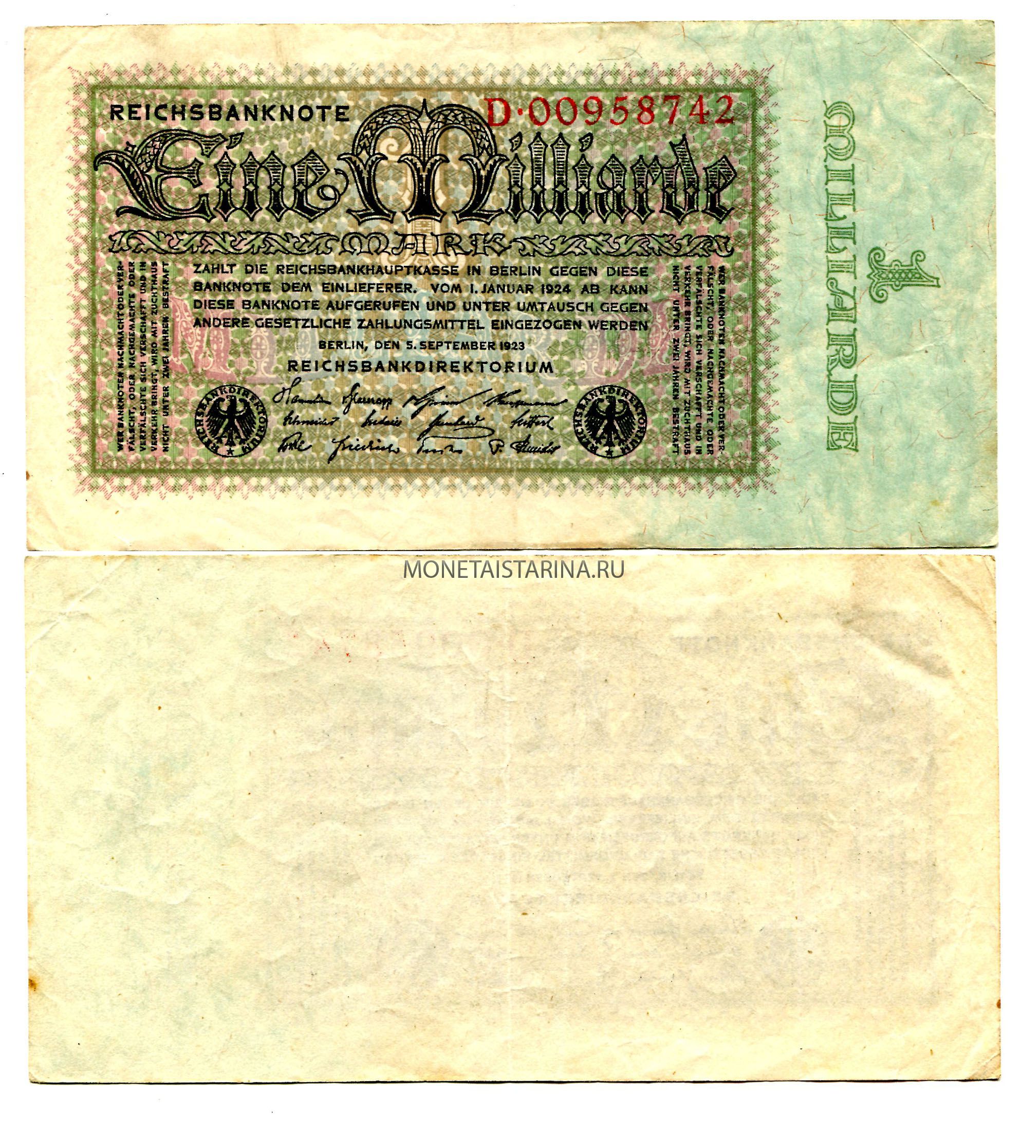 → Банкнота 1 миллиард марок 1924 года Германия
