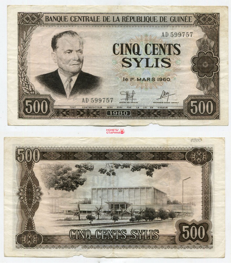 Банкнота 500 силис1980 год. Иосиф Броз Тито Гвинея