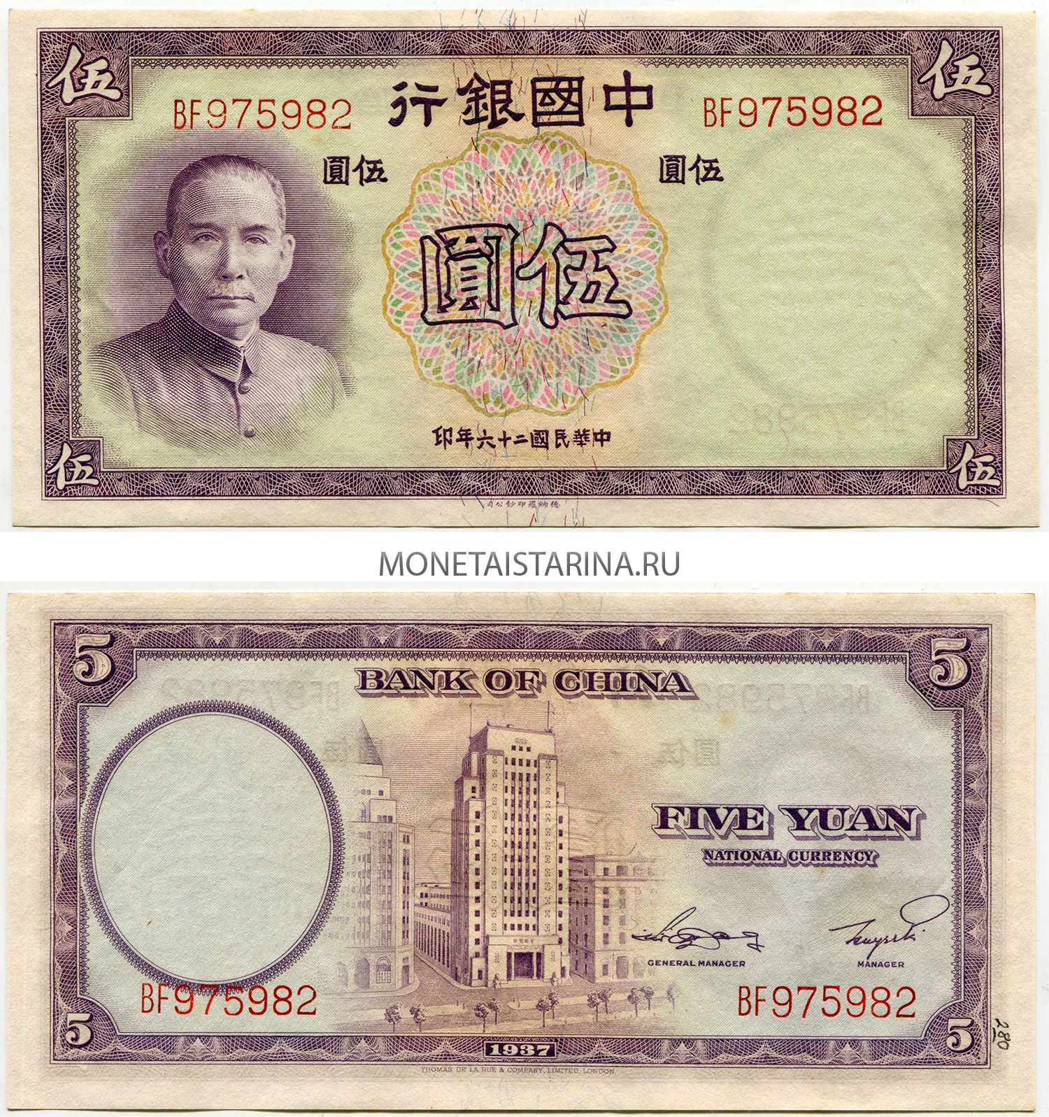 → Банкнота 5 юаней 1937 года. Китай