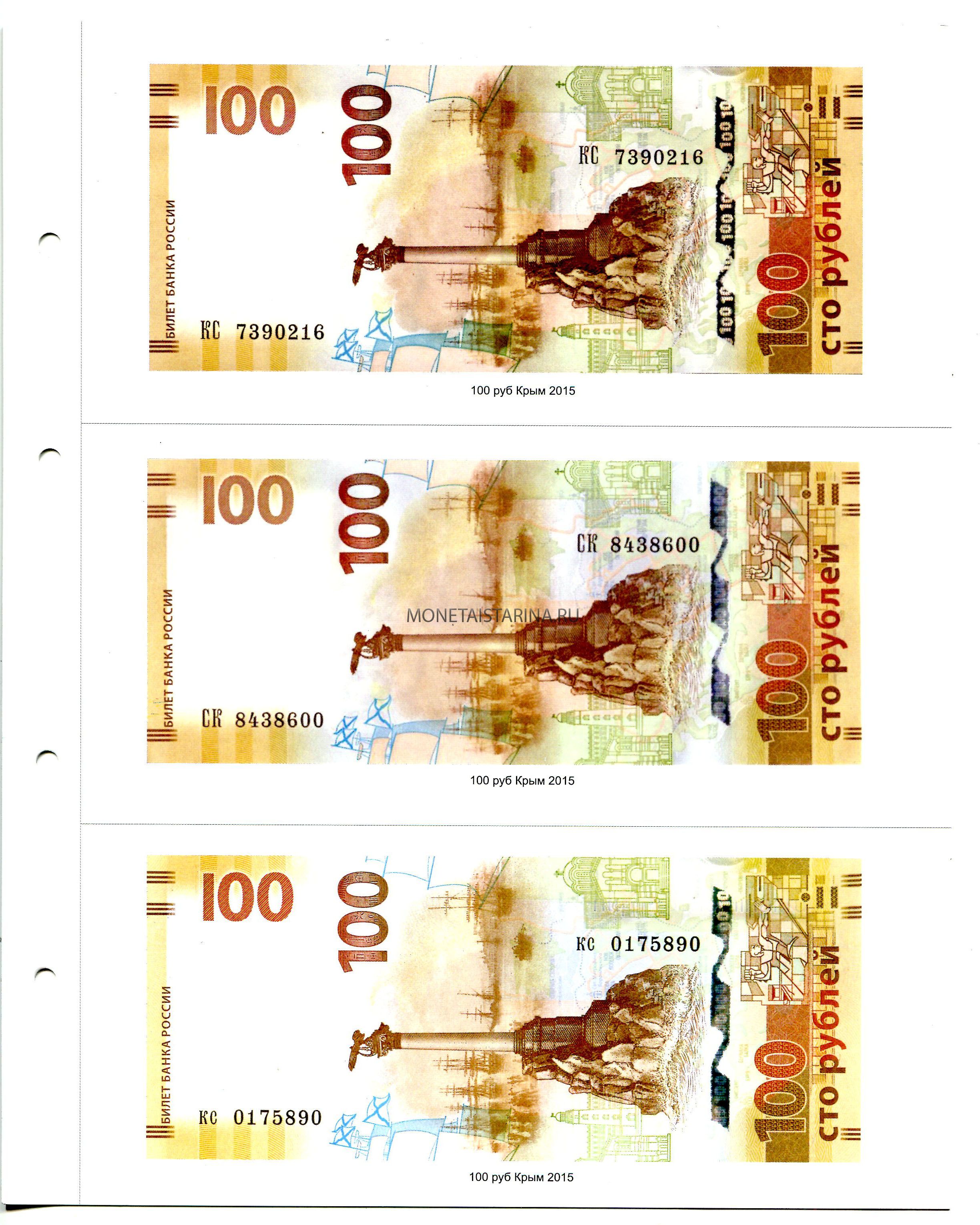 → Лист картонный к альбомам для Памятных 10-рублевых монет ( Крым - 3 банкноты, формат Оптима)