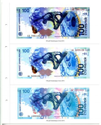 → Лист картонный к альбомам для Памятных 10-рублевых монет (Сочи - 3 банкноты, формат Оптима)