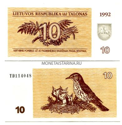 Банкнота 10 талонов 1992 года Литва