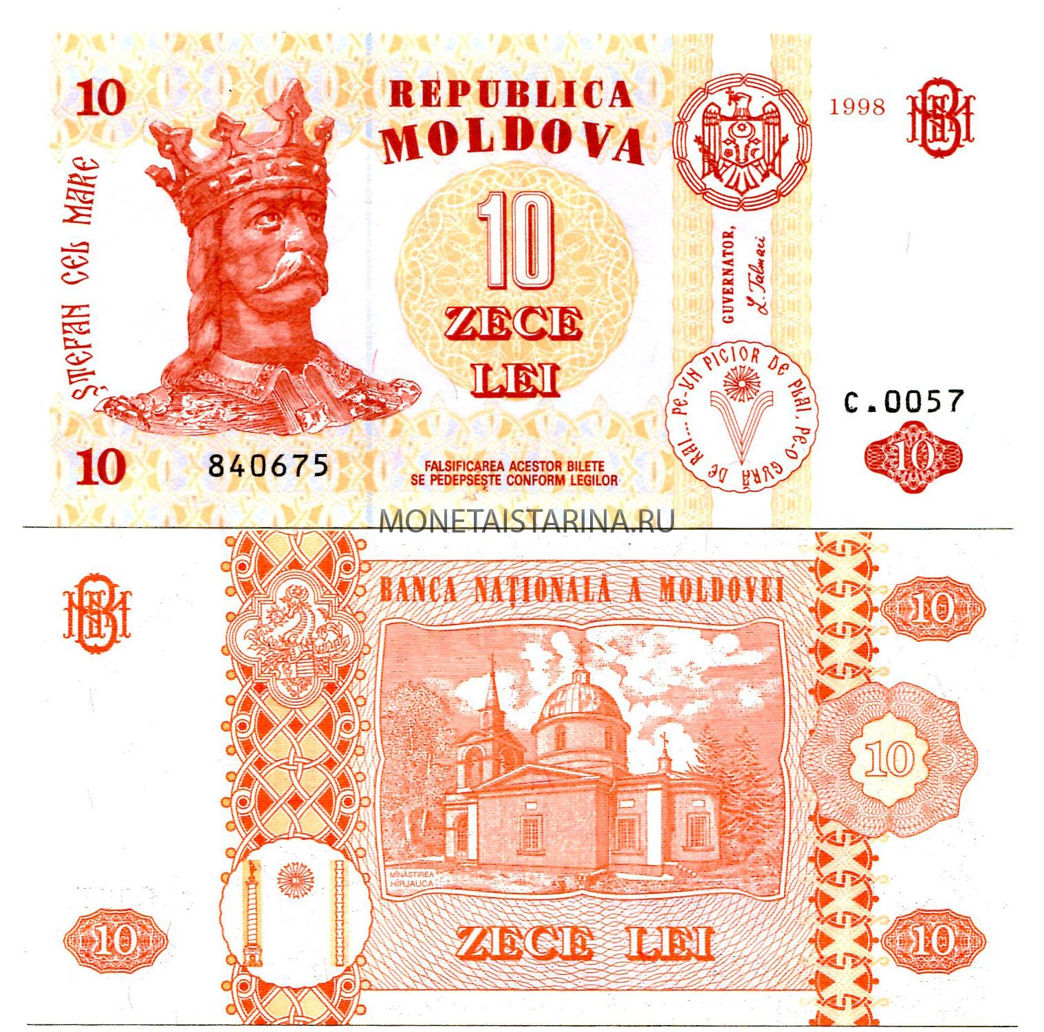 Банкнота 10 лей 1998 года Молдавия