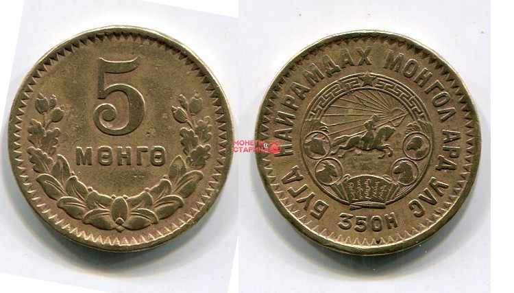 → Монета 5 мунгу 1945 года Государство Монголия