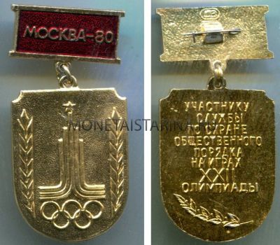 Знак "Участнику службы по охране общественного порядка на играх XXII олимпиады"