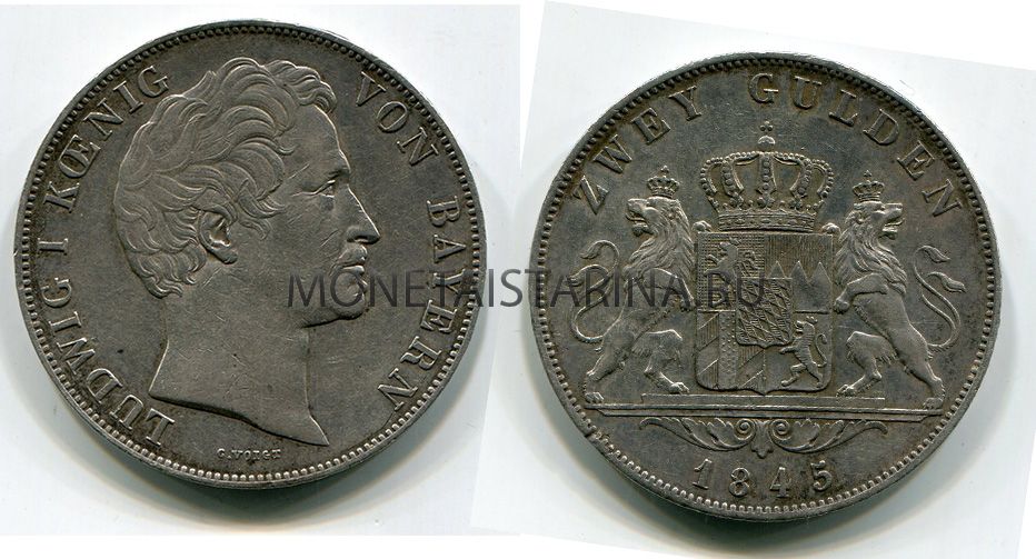→ Монета серебряная 2 гульдена 1845 года. Бавария (Германия)