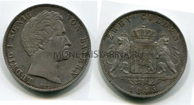 Монета серебряная 2 гульдена 1845 года. Бавария (Германия)