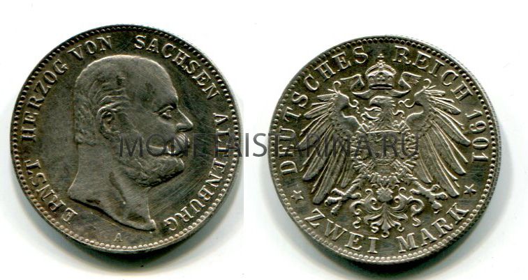 → Монета серебряная 2 марки 1901 года.Альтенбург (Саксония)
