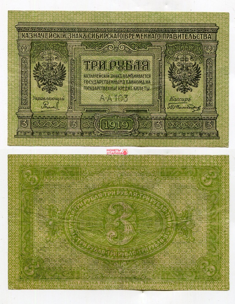 → Банкнота 3 рубля 1919 года (Сибирь)