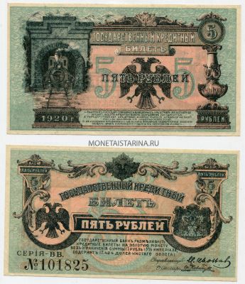 → Банкнота 5 рублей 1920 года. Временное правительство Дальнего Востока (Председатель Медведев)