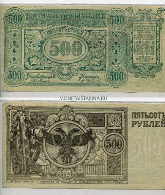 → Казначейский знак (банкнота) 500 рублей 1920 года.Сибирское Временное правительство.(Атаман Семенов)