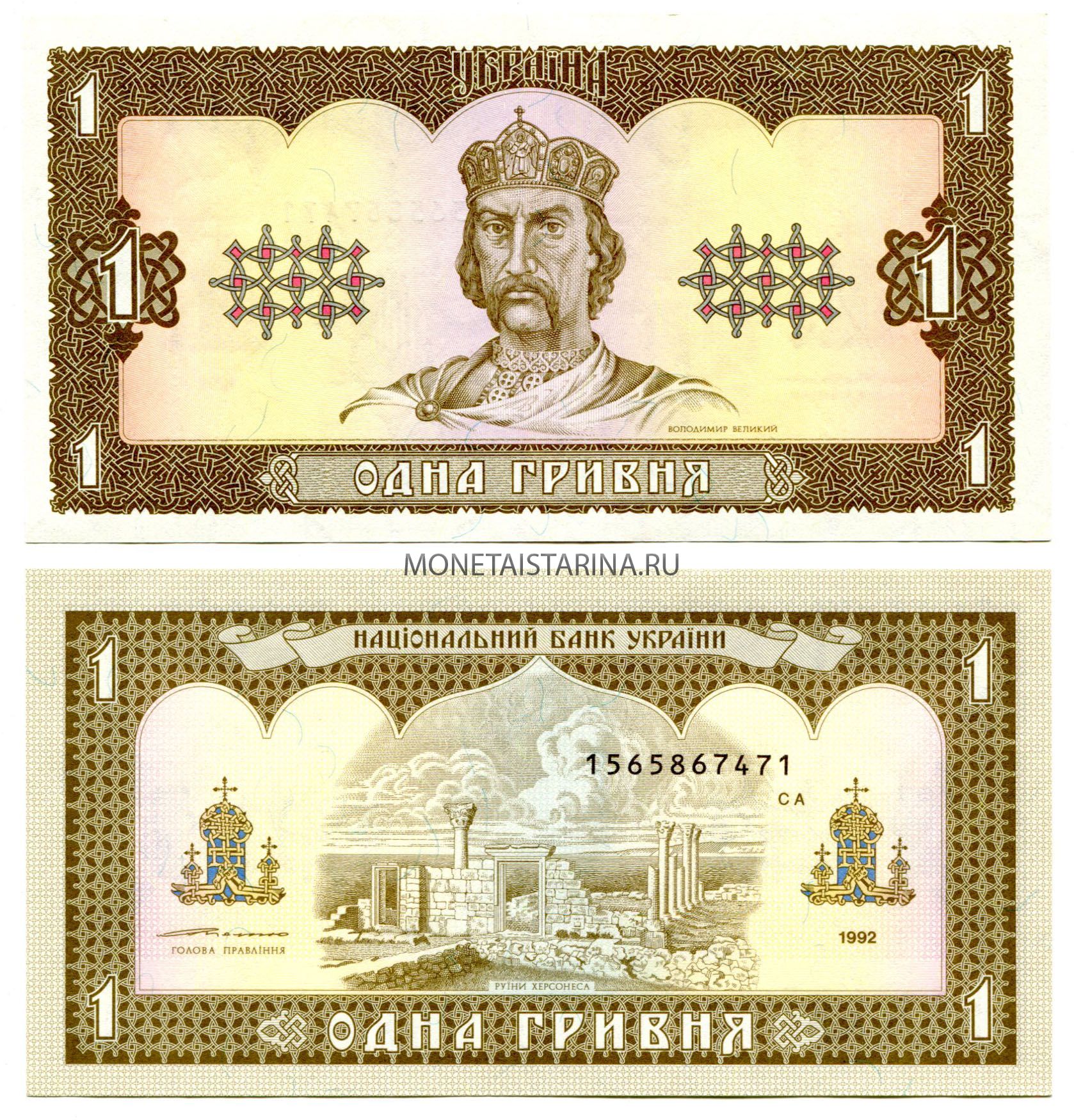 Банкнота 1 гривна 1992 года Украина (подпись Ющенко)