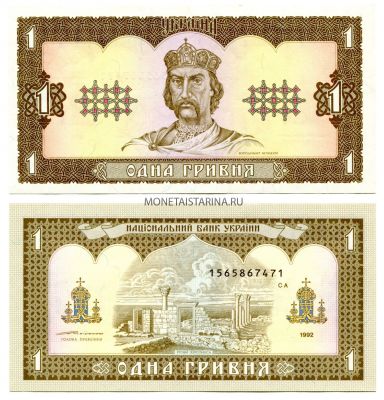 → Банкнота 1 гривна 1992 года Украина (подпись Ющенко)