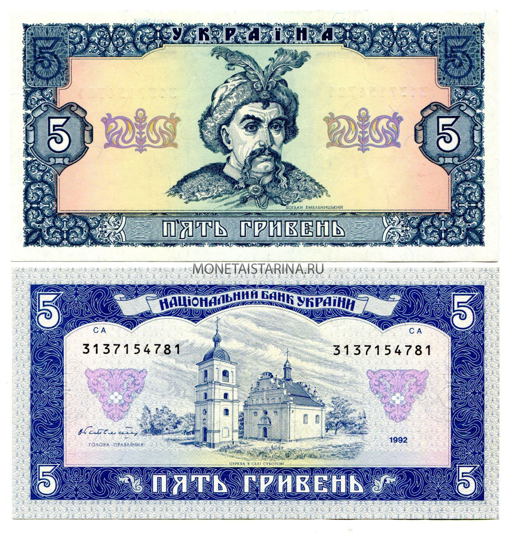 Банкнота 5 гривень 1992 года Украина (подпись Гетьмана)