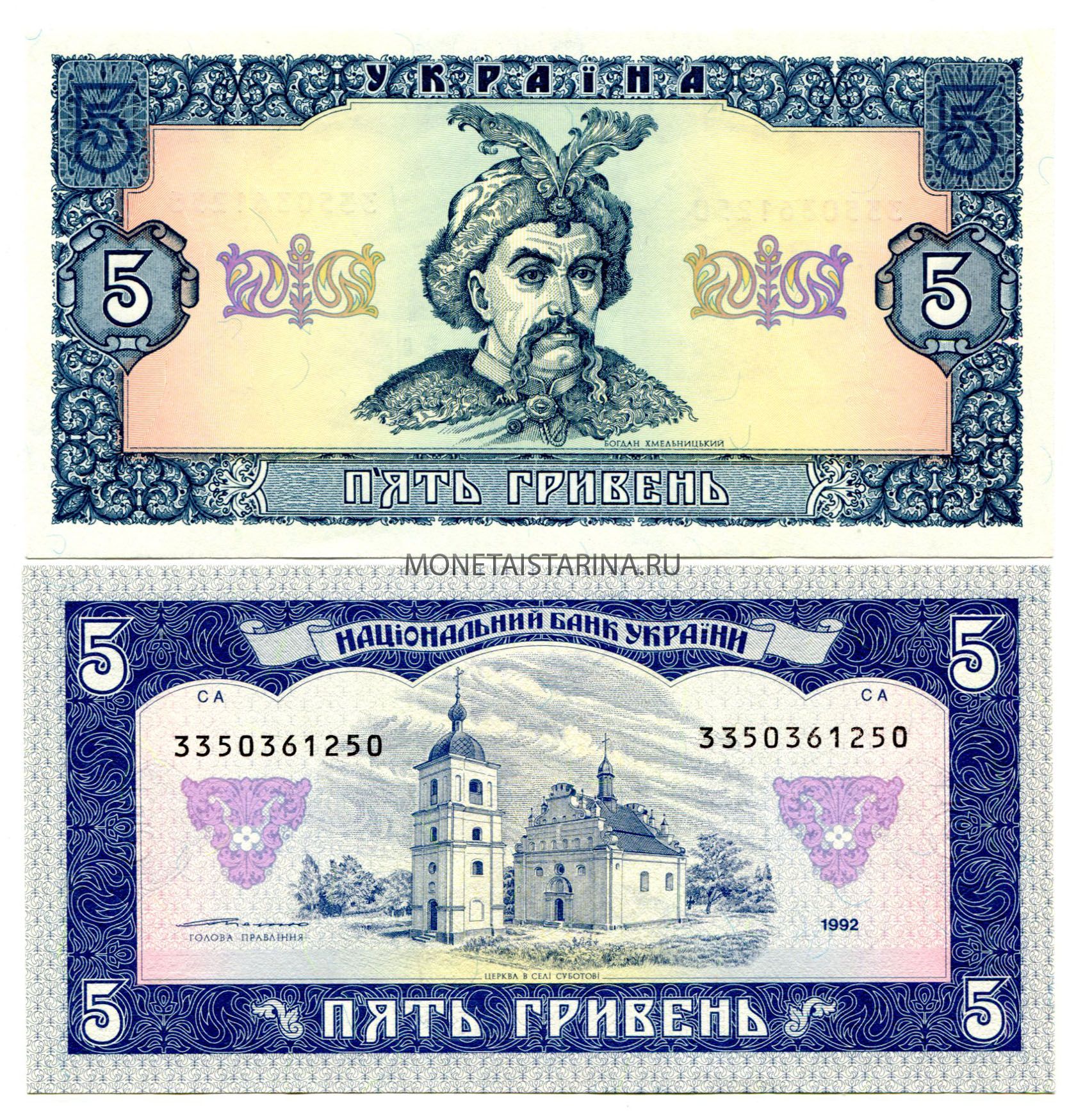 Банкнота 5 гривень 1992 года Украина (подпись Ющенко)