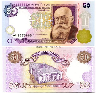 → Банкнота 50 гривень 1996 года Украина (подпись Ющенко)