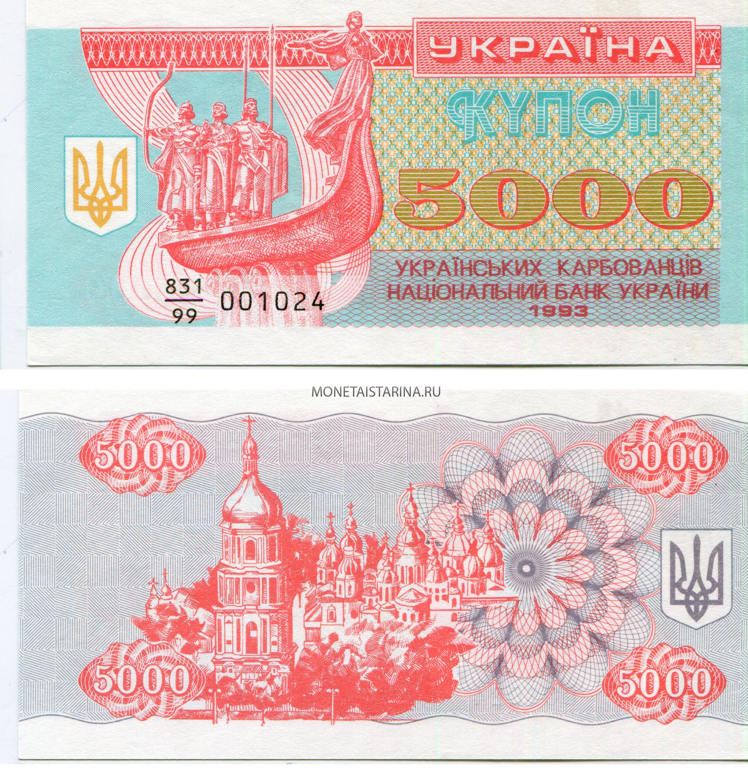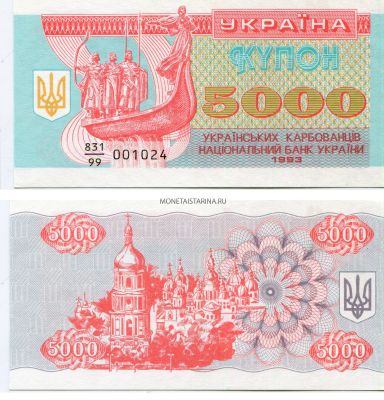 → Банкнота 5000 купонов 1993 года. Украина.