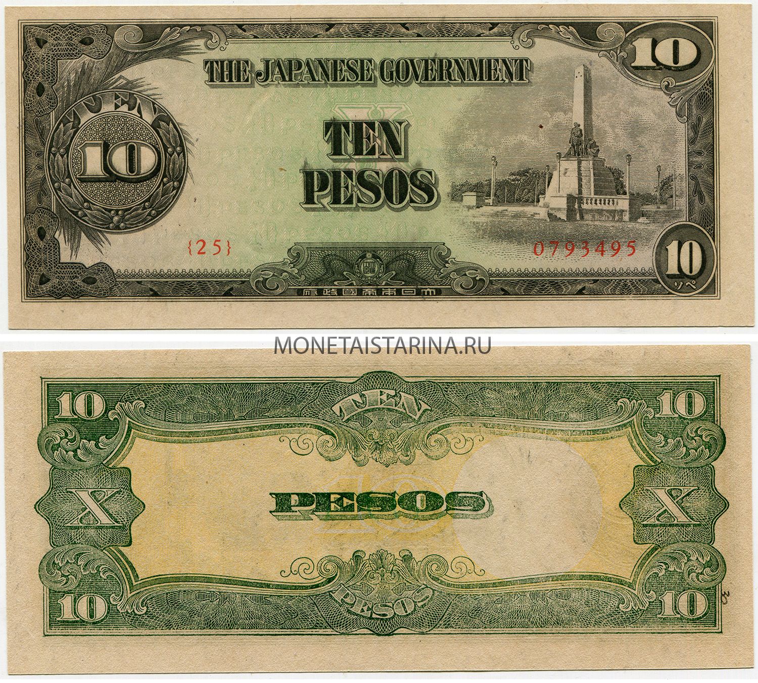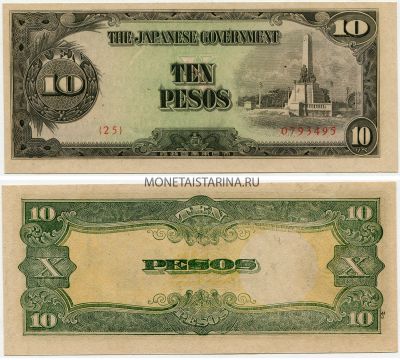 → Банкнота 10 песо 1943 года. Японская оккупация Филиппин