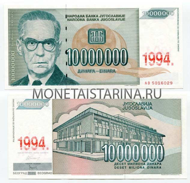→ Банкнота 10 миллионов динаров 1994 года Югославия